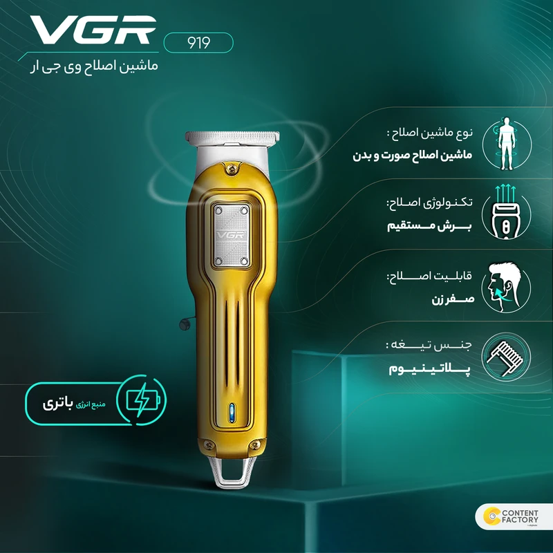 ماشین اصلاح وی جی آر مدل V-919 با تیغه استیل ضد زنگ و برش مستقیم